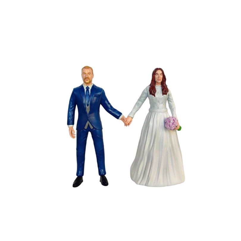 Este producto no solo es un adorno de tarta, sino también un recuerdo que los novios pueden conservar después de la boda. La atención al detalle y la precisión en el modelado aseguran que cada mini figura capture la esencia de la pareja y su estilo personal.